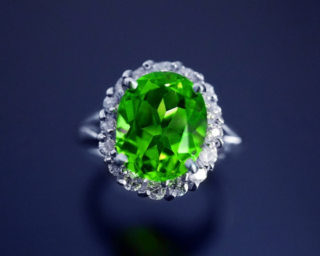 8月の誕生石である「ペリドット」は美しいオリーブの色(黄緑色)をした石で、古代エジプトでは「太陽の石」として崇められていました。