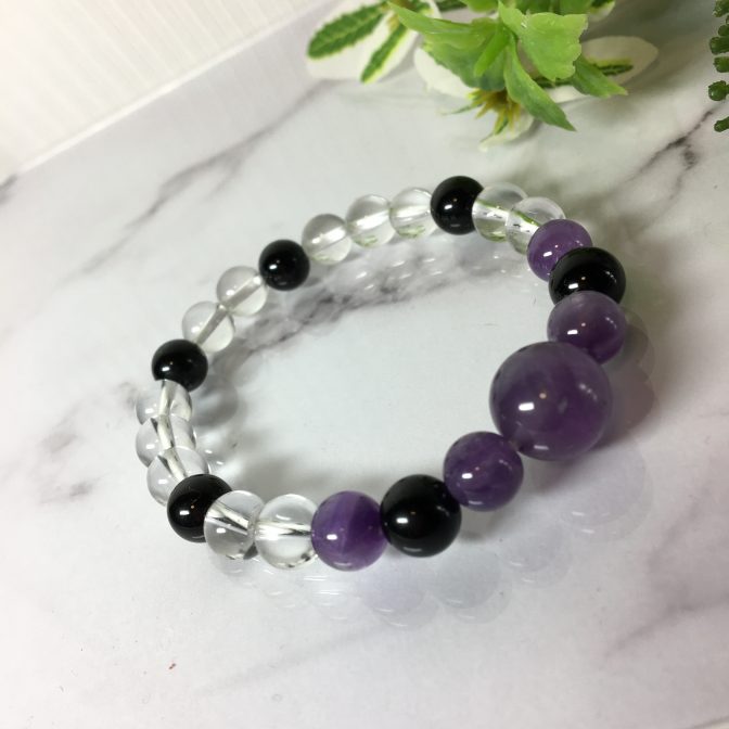 天然石 アメジスト・オニキス・水晶 02ブレスレット