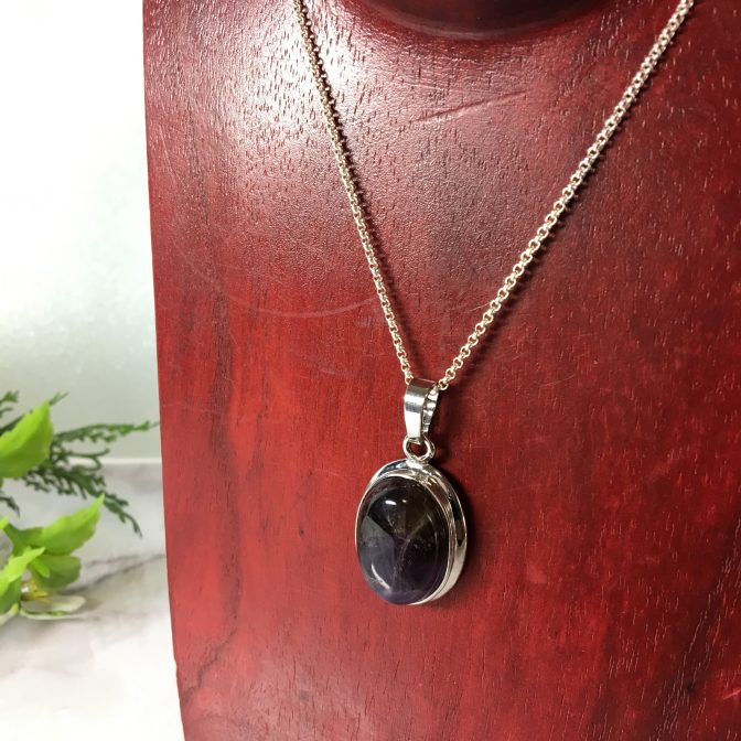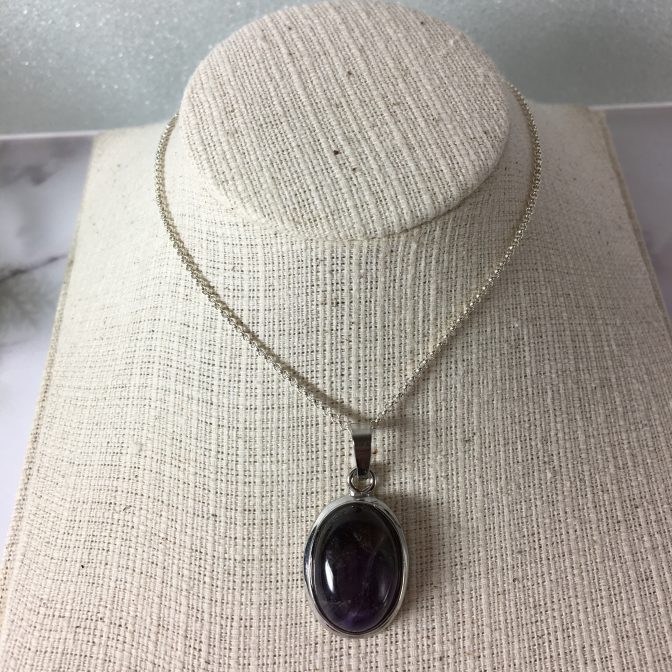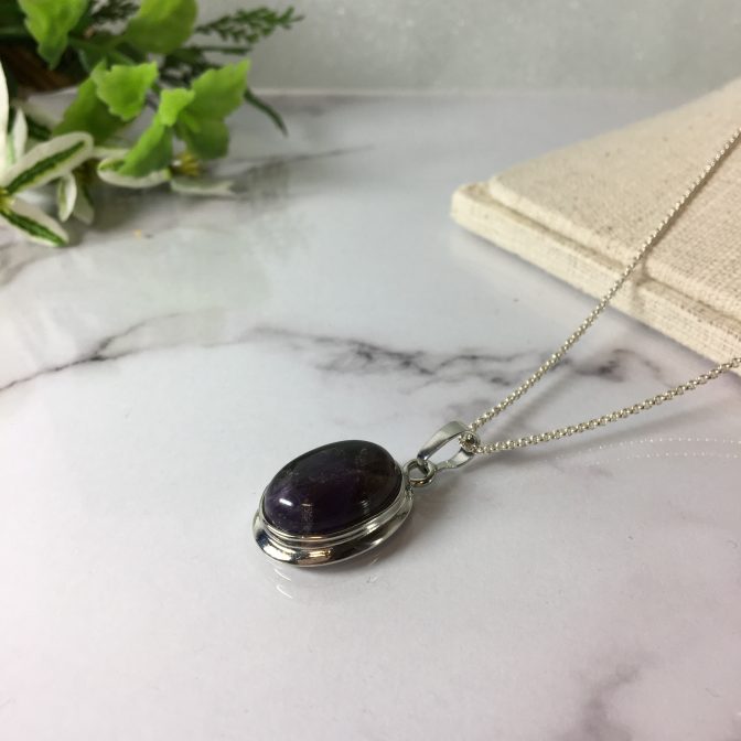 楕円形のシンプルなデザインのアメジスト石のペンダントトップ。