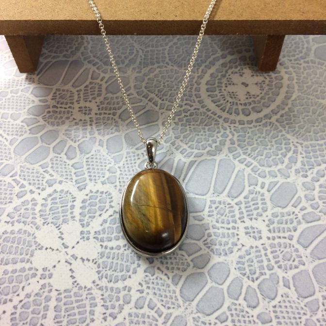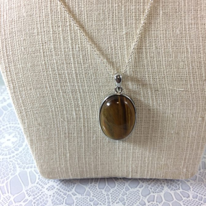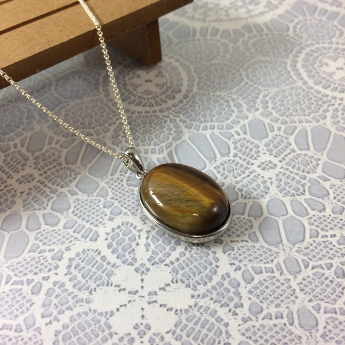 シンプルなデザインながら、タイガーアイのブラウンのグラデーションが素敵です。
